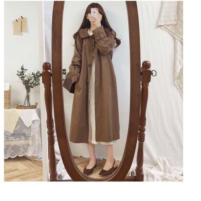 韓国 ファッション レディース 秋冬 韓国 ファッション レディース ステンカラーコート ロングコート アウター ゆったり 無地 カジュアル