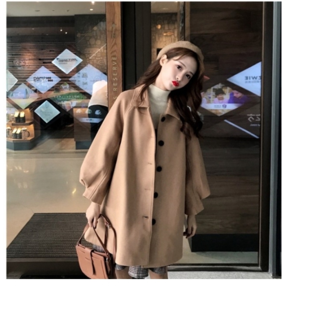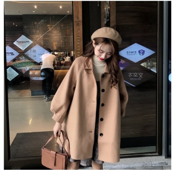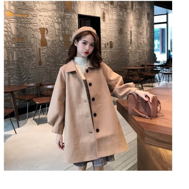 大きいサイズ レディース ロングコート ステンカラーコート アウター ロング レディース 大きいサイズ ボリューム袖 大人可愛い モテ 秋