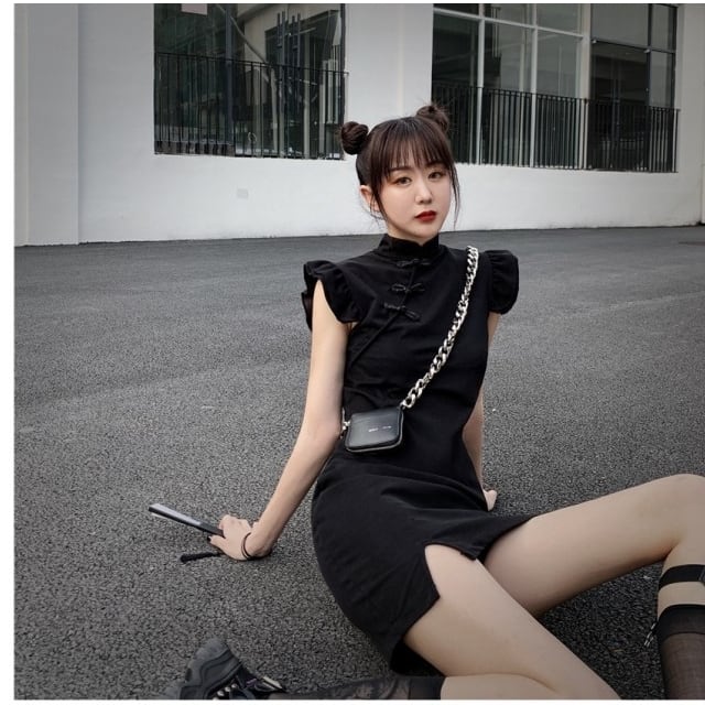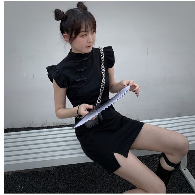 レディース ワンピース 春夏 チャイナドレス ワンピース ミニ マイクロミニ ミニワンピース フリル フリル袖 半袖 レディース ワンピ セ