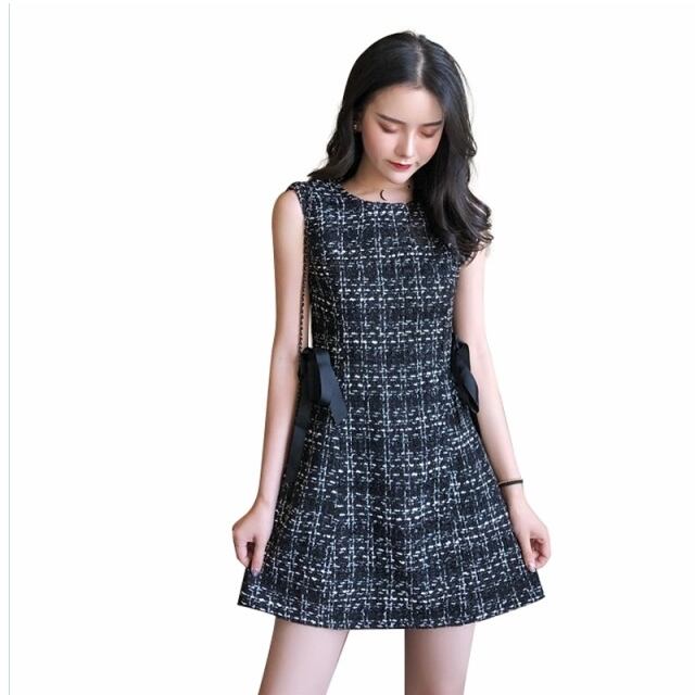 大人カジュアル レディース ワンピース チェック柄 ミニ丈 ツイードワンピース ノースリーブワンピース ミニワンピース Aラインワンピー