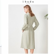 シャツワンピース ロング丈 長袖 コットンポプリン 両開きギャザーシャツワンピース レディース トップス ワンピース ブラウス シャツ