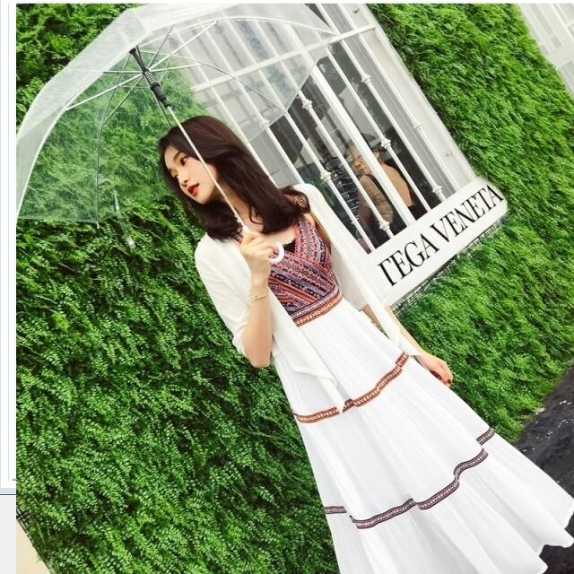夏物ワンピース レディース シフォン セクシービーチスカート エスニック ロングワンピース Vネック リゾート ノースリーブ 海 旅行 雑誌