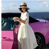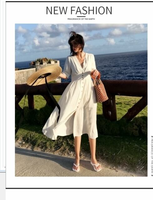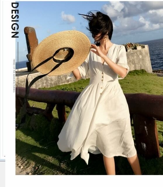 夏物ワンピース トレンド 夏物 売れ筋 ワンピース 前開き フレア ミモレ丈 ひざ丈 Vネック 半袖 無地 ガーリー 可愛い