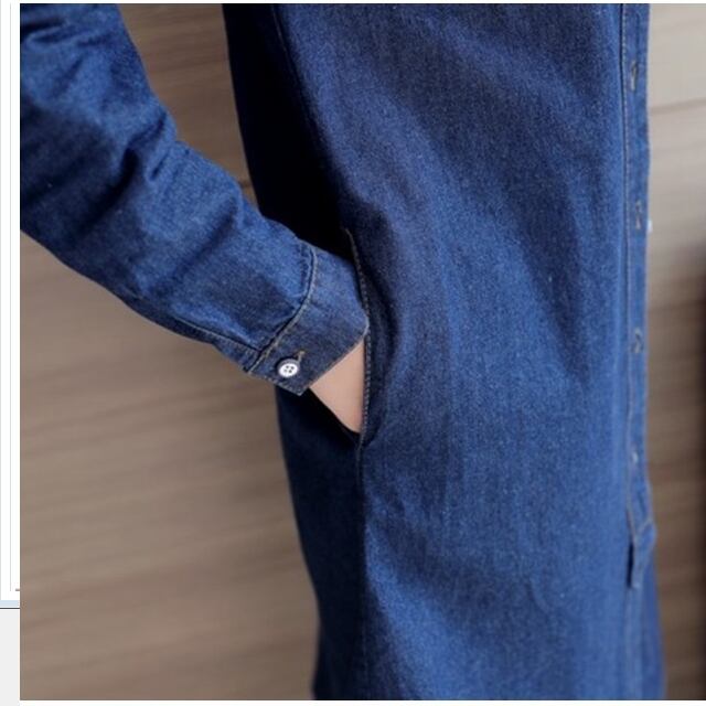 シャツワンピース ロング丈 長袖 デニム シャツワンピース 大きいサイズ ロング丈 長袖 ブルー 春新作 ロングワンピース レディース マキ