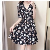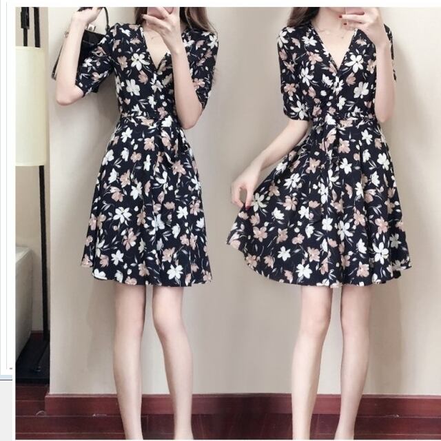 夏物ワンピース 花柄フレア袖ブラウス アウリー レディース トップス 紺 黒 肌 ネイビー ブラック ベージュ 夏物 春夏 花柄 フレア