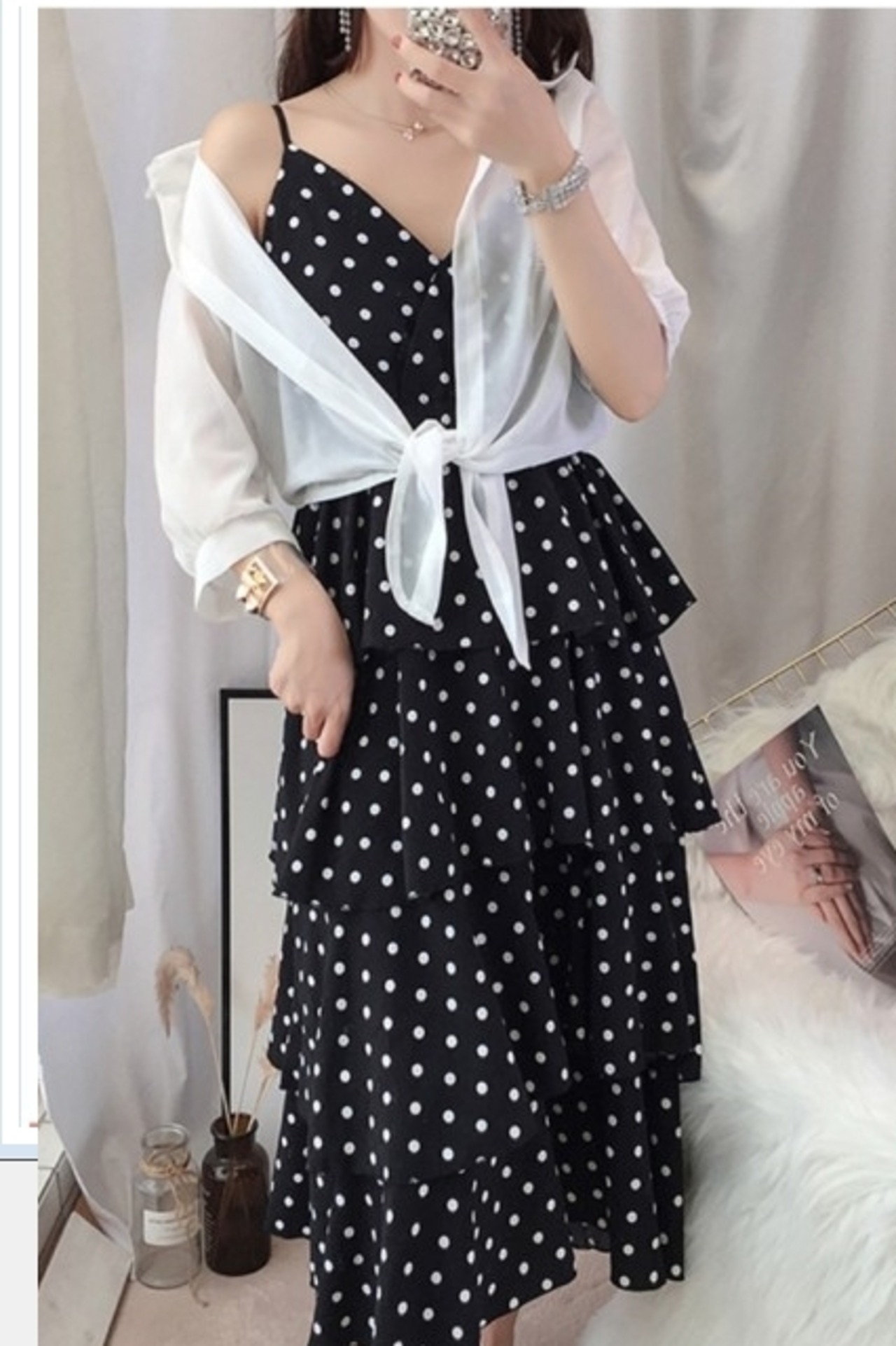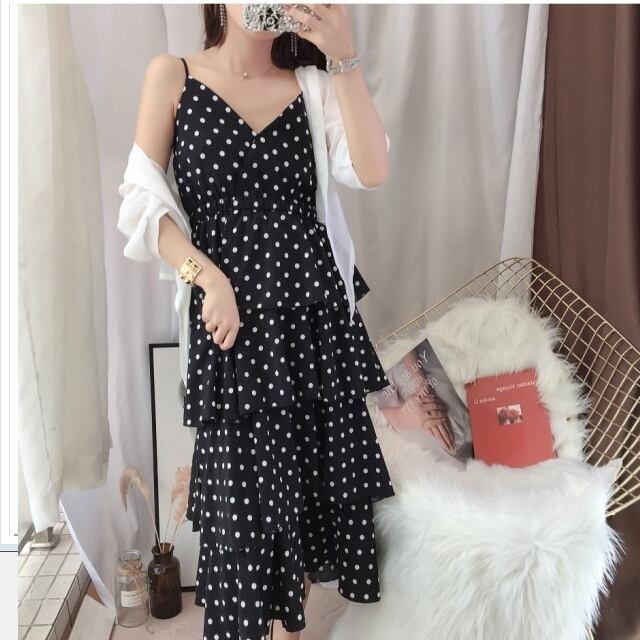 夏物ワンピース レディース ドット柄 ティアード ワンピース キャミソール ワンピ ひざ下丈 夏物 デート リゾート セクシー 大人可愛い