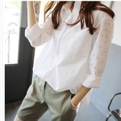 レディース トップス 春夏 花柄透かし刺繍 ブラウス レディース 長袖 ロングシャツ 白 ゆったり トップス 春夏
