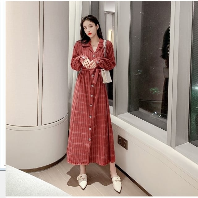 シャツワンピース ロング丈 長袖 秋物 ワンピース シャツワンピース 秋 マキシシャツワンピース 長袖ワンピース シャツワンピース チェッ