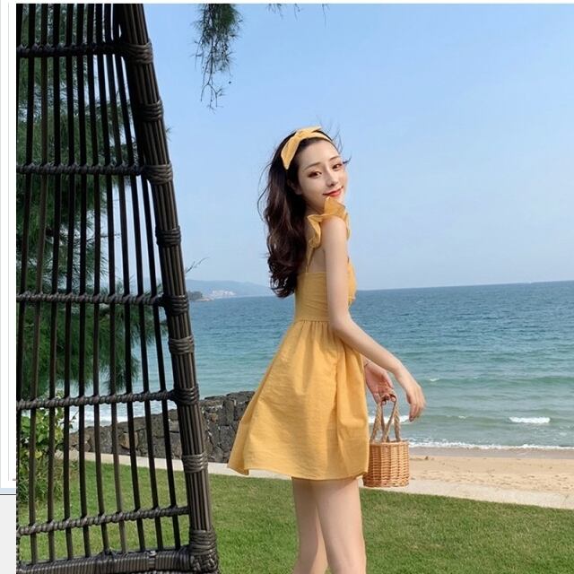 夏物ワンピース おすすめ 夏物 水着 ワンピース クロスデザイン フリル フレア 無地 ガーリー 体型カバー ガーリー 可愛い リゾート ビー