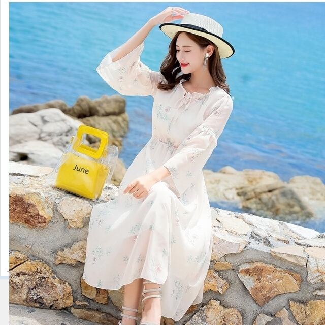 サマー ドレス リゾート ボリュームスリーブ花柄ワンピース 清楚 カジュアル ベージュ サマーワンピース ビーチドレス