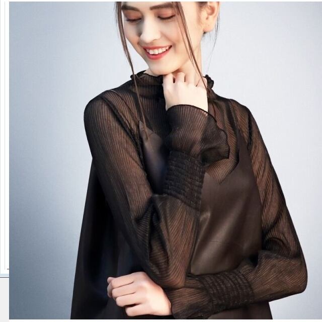 フリルブラウス 韓国 シースルー フリル スタンドカラー ブラウス プルオーバー 6色 フレアスリーブ シフォン 3L 大きいサイズ レディー