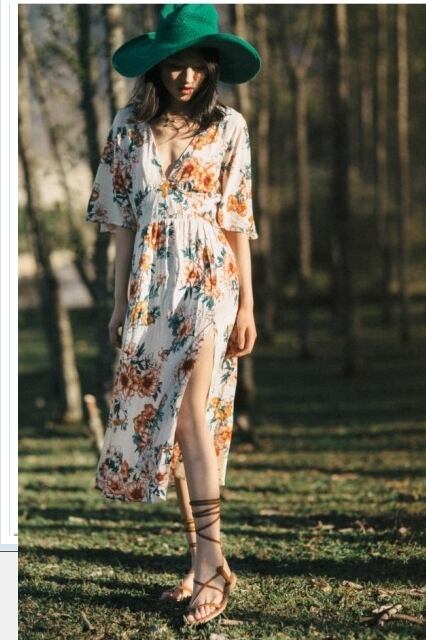 サマー ドレス リゾート ロングワンピース 夏 パイナップル柄 Vネック 袖あり トロピカル ゆったり 体型カバー こなれ感 リゾートワンピ
