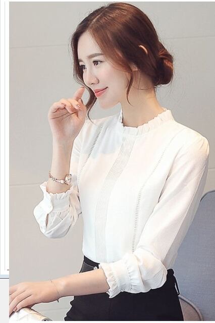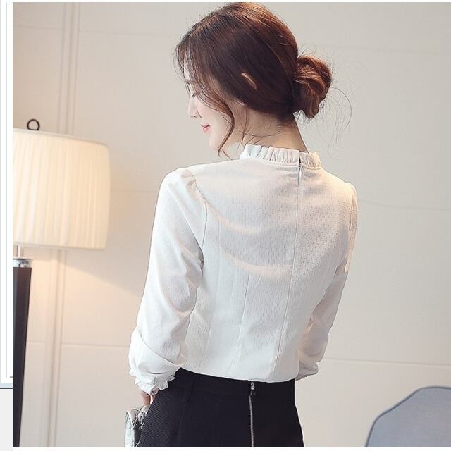 フリルブラウス 韓国 花柄 レース パフスリーブ ブラウス フリル 長袖 襟 2色
