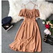 サマー ドレス リゾート リゾートワンピ シフォン ドレスワンピ ストラップ フリル スリムウエスト ラップドレス エレガント 上品 シフォ