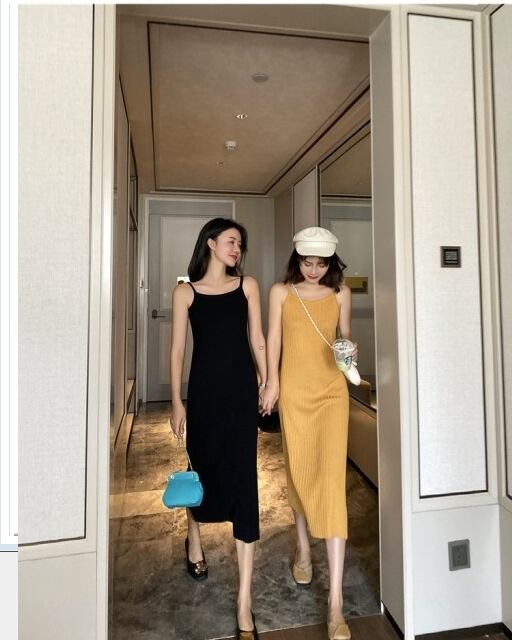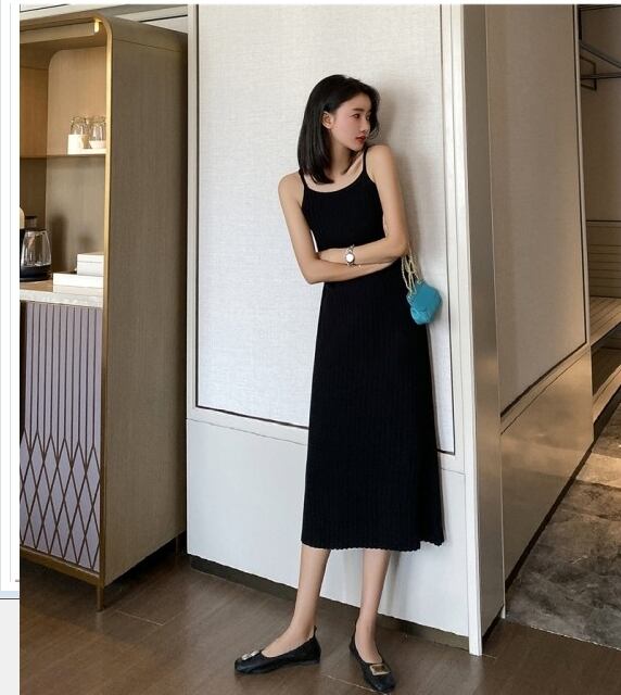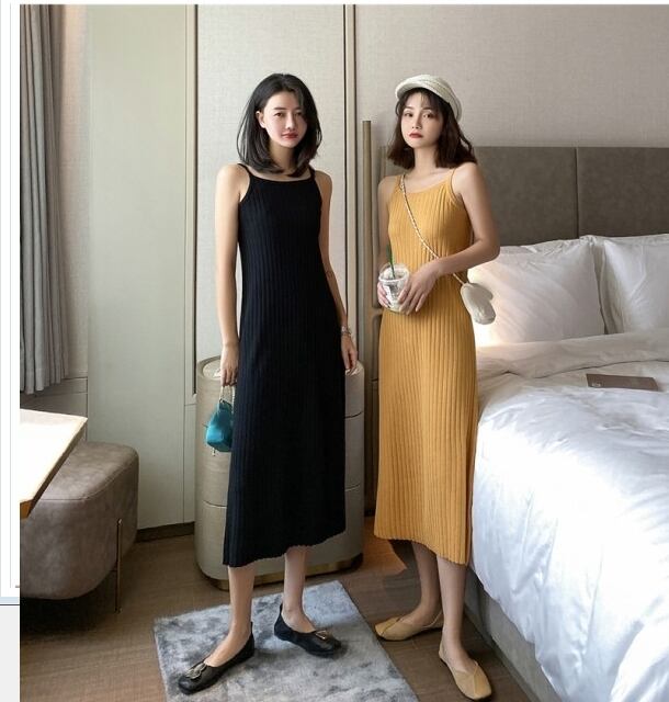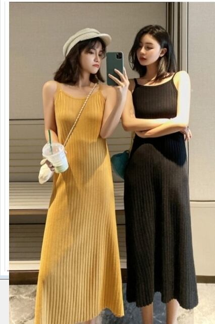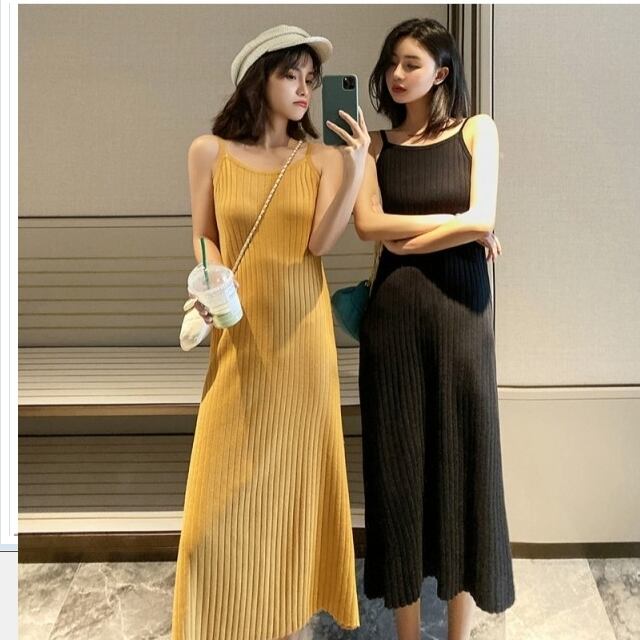 サマー ドレス リゾート ビーチやリゾートにオススメのサマーニット!肩リボン ストライプ薄手ニットドレス