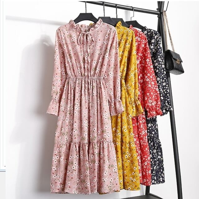 夏物ワンピース フレアスリーブ 花柄 シフォンブラウス 透け感 秋 夏物 ワンピース トップス レディース ニット