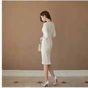 ボートネック ワンピース ワンピース ホワイト ストレート レース 半端袖 ひざ丈 ボートネック 韓国 上品 フェミニン オールシーズン