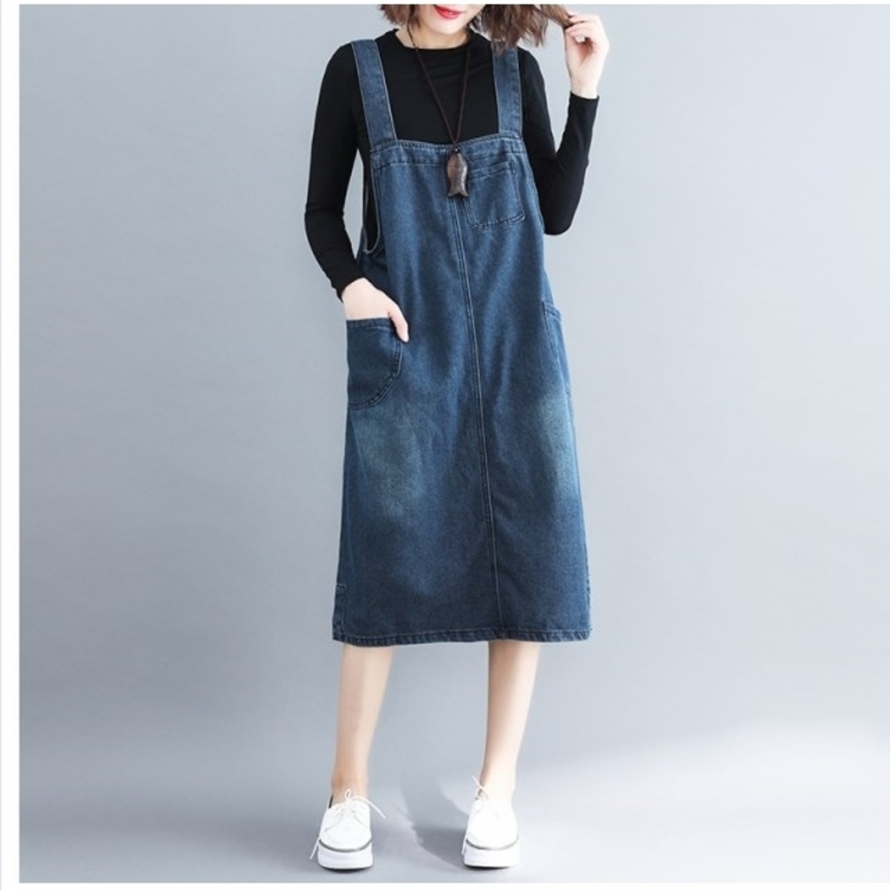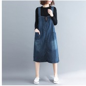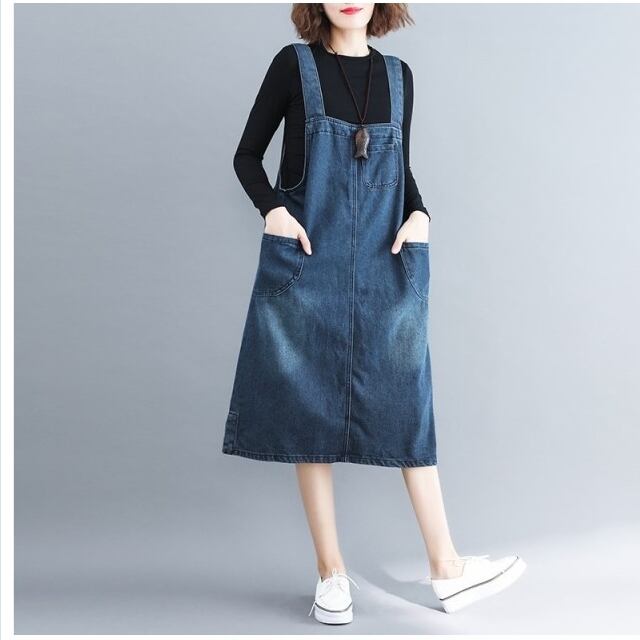 ボートネック ワンピース デニム レディース ジャンパースカート ワンピース ミディアムワンピース 膝丈ワンピース ノースリーブ キャミ
