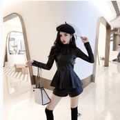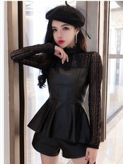 シースルー トップス 長袖 シースルー フリル トップス ペプラム ビスチェ セットアップ 長袖 クルーネック カジュアル きれいめ 大人可