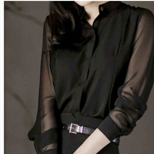 大きいサイズ レディース 春服 シースルー ブラウス 黒 シャツブラウス レディース シャツブラウス 長袖 大きいサイズ 3L トップス 春 秋