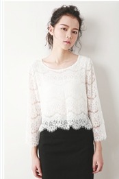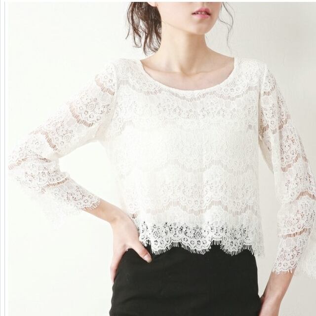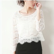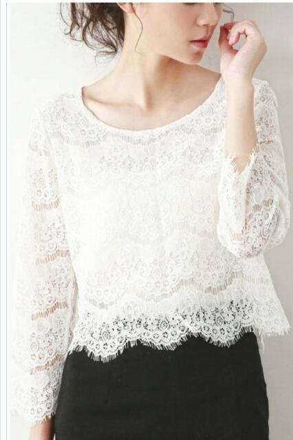 大きいサイズ レディース 春服 総レースブラウス ショート丈ブラウス 白シャツ 長袖 トップス レディース 韓国 オルチャン ファッション