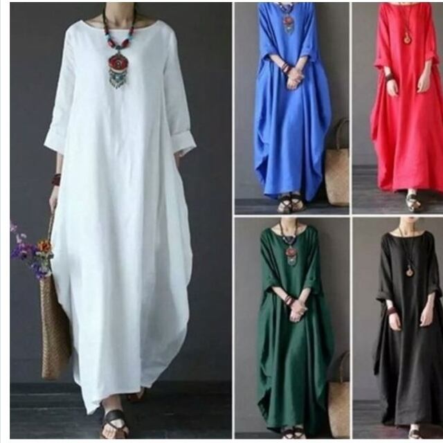 花柄 ロングワンピース 長袖 綿麻ワンピース ロング レディース マキシワンピース 長袖 リネンワンピース マキシ ワンピ 綿麻混 ゆるっと