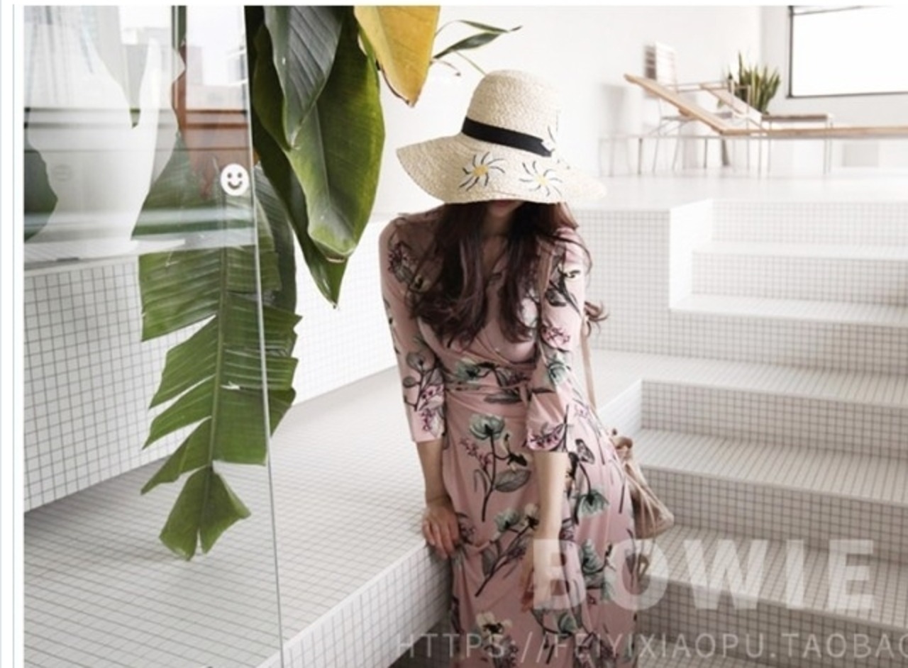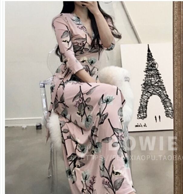 大人 ワンピース タイト 膝丈 韓国 ファッション レディース タイトワンピース ドレス Vネック ラップデザイン スカーフ柄 ボタニカル柄