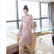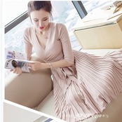 大人 ワンピース タイト 膝丈 レディース ニット セーター トップス 大人可愛く決まる カシュクールのニットワンピ 大きいサイズ タイト