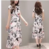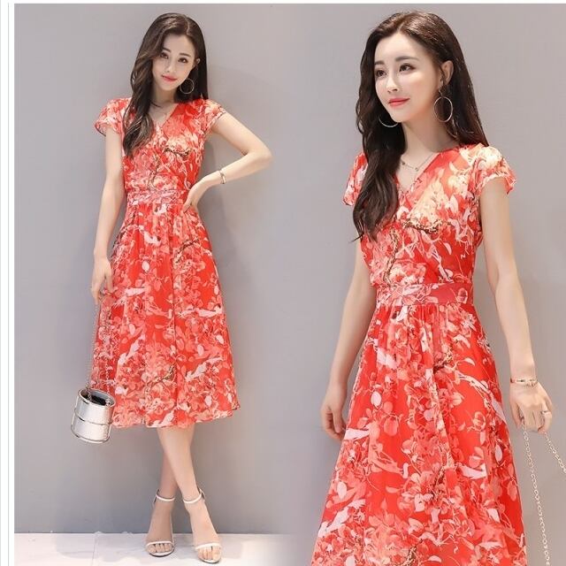 大人可愛い チュニック ワンピース ドレス 袖あり ミディ丈 半袖 模様 プリント ワンピース スカート 上品 結婚式 二次会 秋冬 秋冬新作