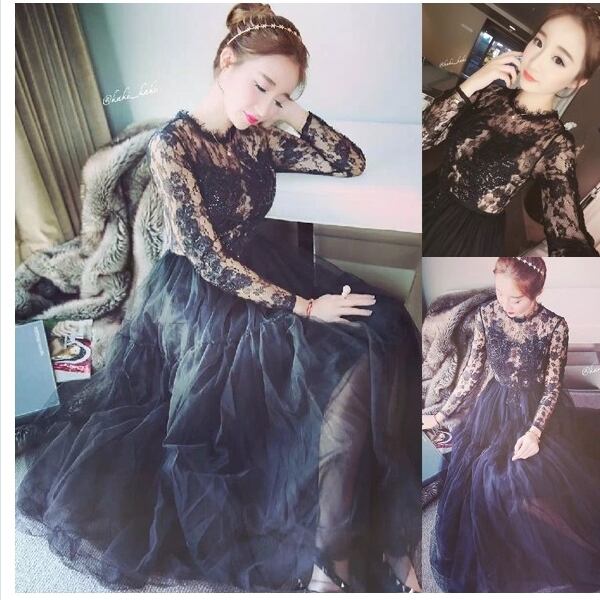 花柄 ロングワンピース 長袖 チュール スカート 可愛い レース ドレス ワンピース ロング 長袖 結婚式 二次会 パーティ 20代 30代