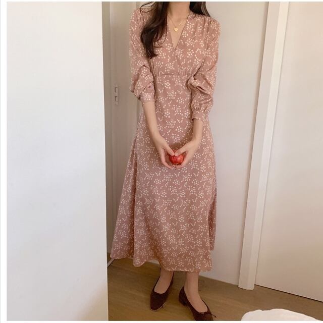 花柄 ロングワンピース 長袖 カシュクールスキッパーロングワンピース カシュクール 花柄