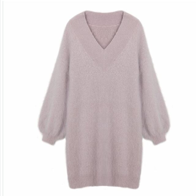 大人可愛い チュニック ワンピース 秋冬新作ワンピース ニットワンピース モヘアニットワンピース Vネックワンピース 長袖ワンピース ミ