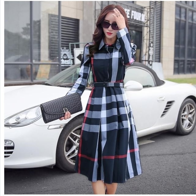 ボートネック ワンピース ワンピース レディース 膝丈 ワンピース カジュアル 長袖 大きいサイズ 春 夏 春ワンピ フレア チェックワンピ