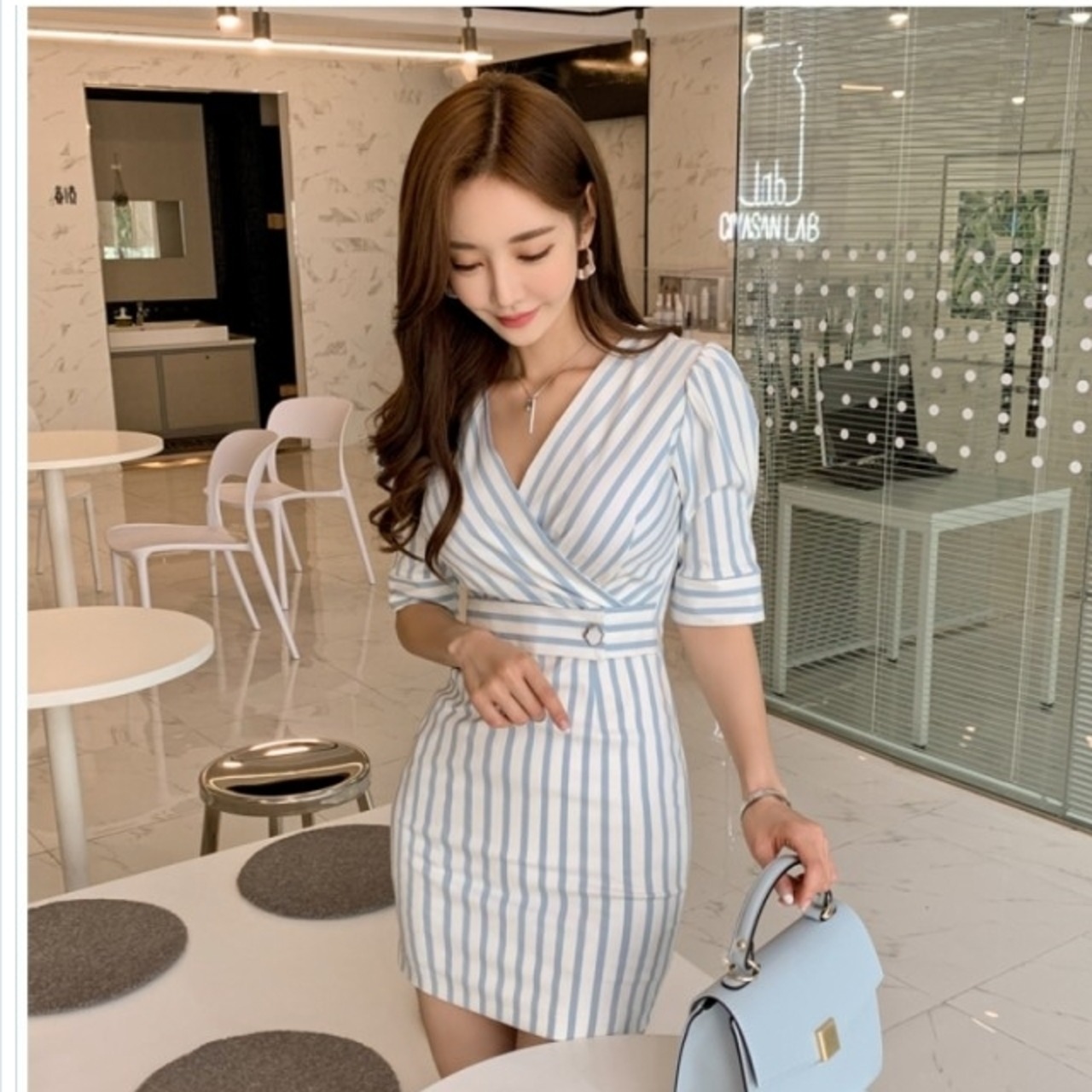 大人可愛い チュニック ワンピース ワンピース タイト 膝上 マイクロミニ サイドリボン カシュクール レイヤード風 アンバランス丈 Vネッ