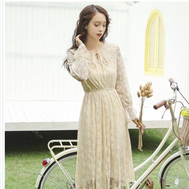 大人可愛い チュニック ワンピース 春新作 大きいサイズ ワンピース 総レース 長袖 ワンピース