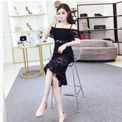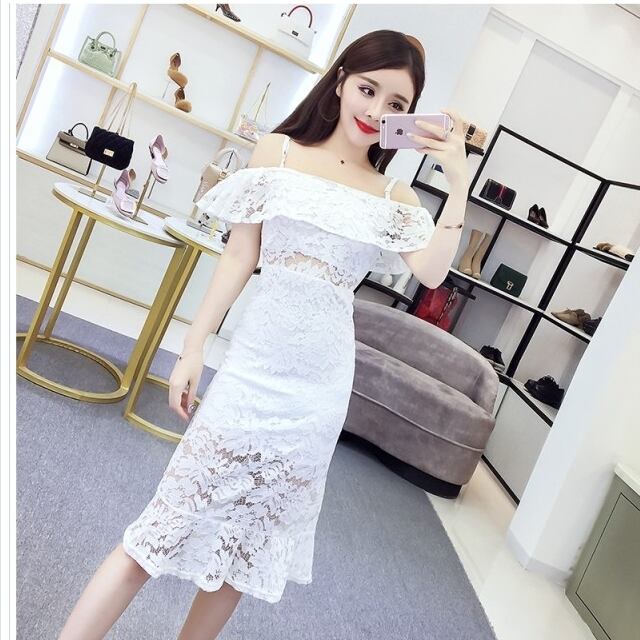 大人可愛い チュニック ワンピース ワンピース ミディ丈 タイト タイトワンピース クルーネック フラワーモチーフ 花柄 総レース 半袖 ネ