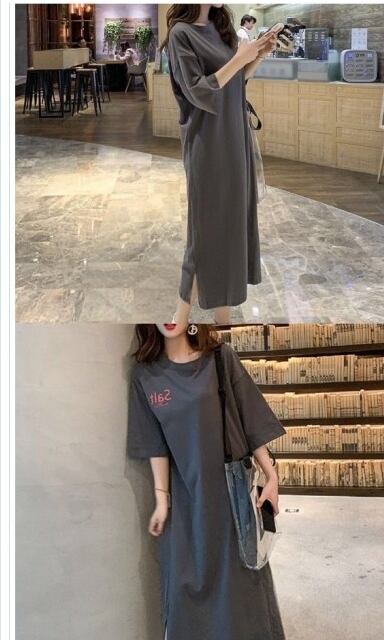 大人可愛い チュニック ワンピース 春新作 シミヘン加工フレンチバスク ドロップショルダーコクーンワンピース ボーダー&無地 トップス