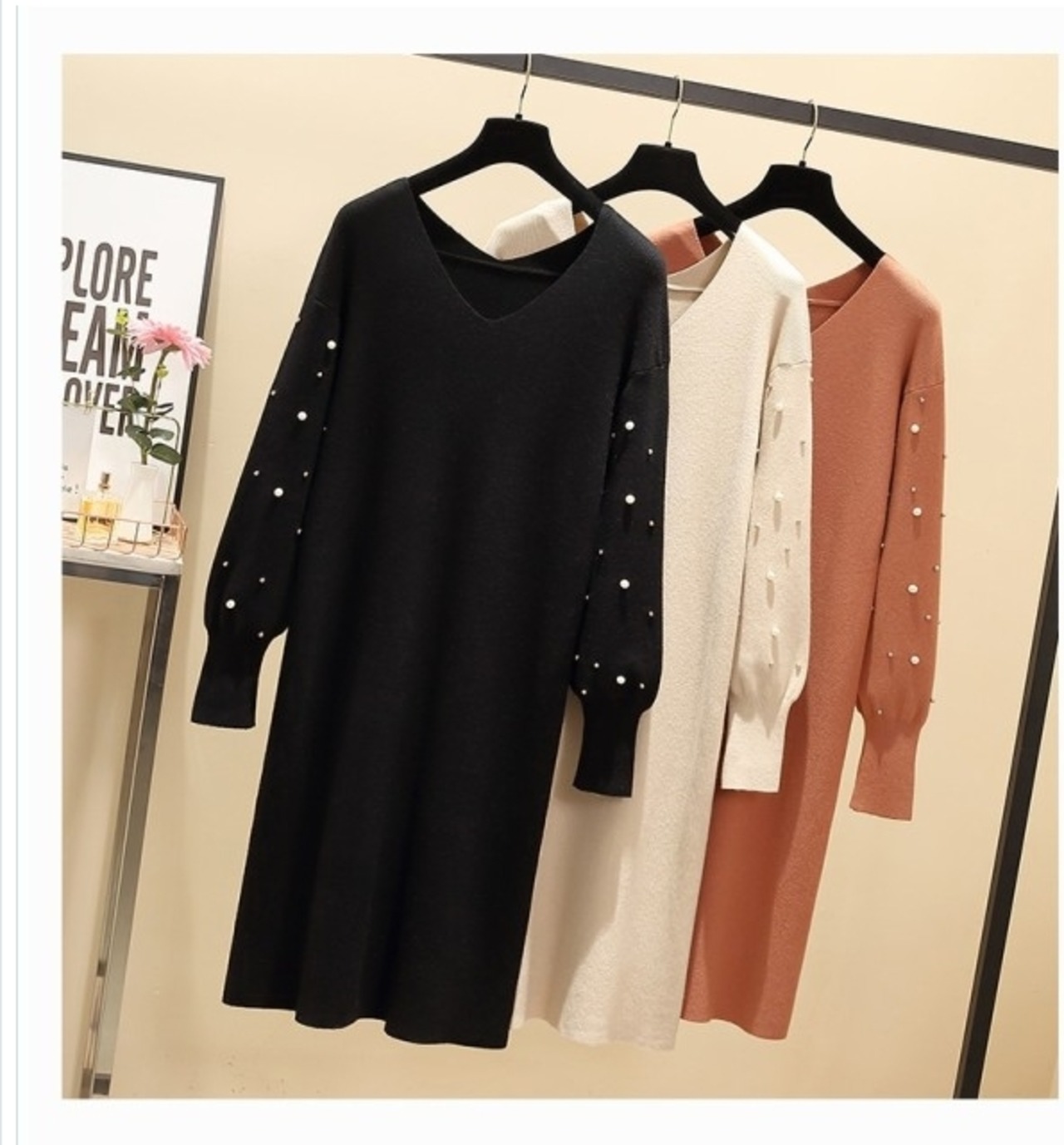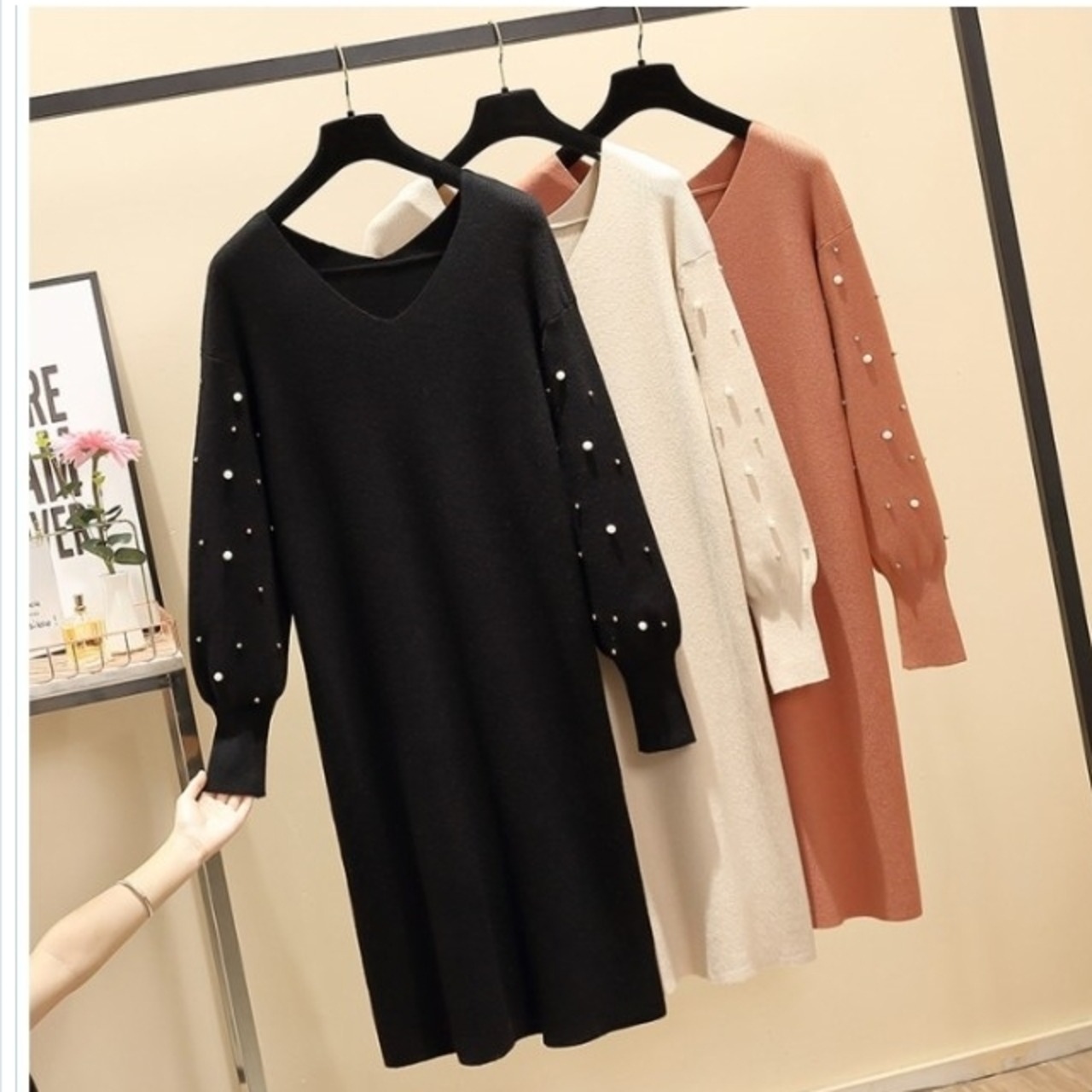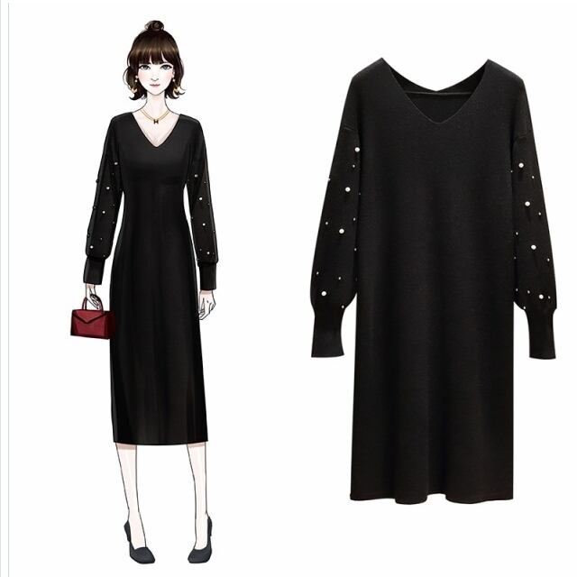 大人可愛い チュニック ワンピース 秋新作 ニットワンピース 秋 ニットチュニック ロングセーター 長袖 ミディアム丈 ワンサイズ シンプ