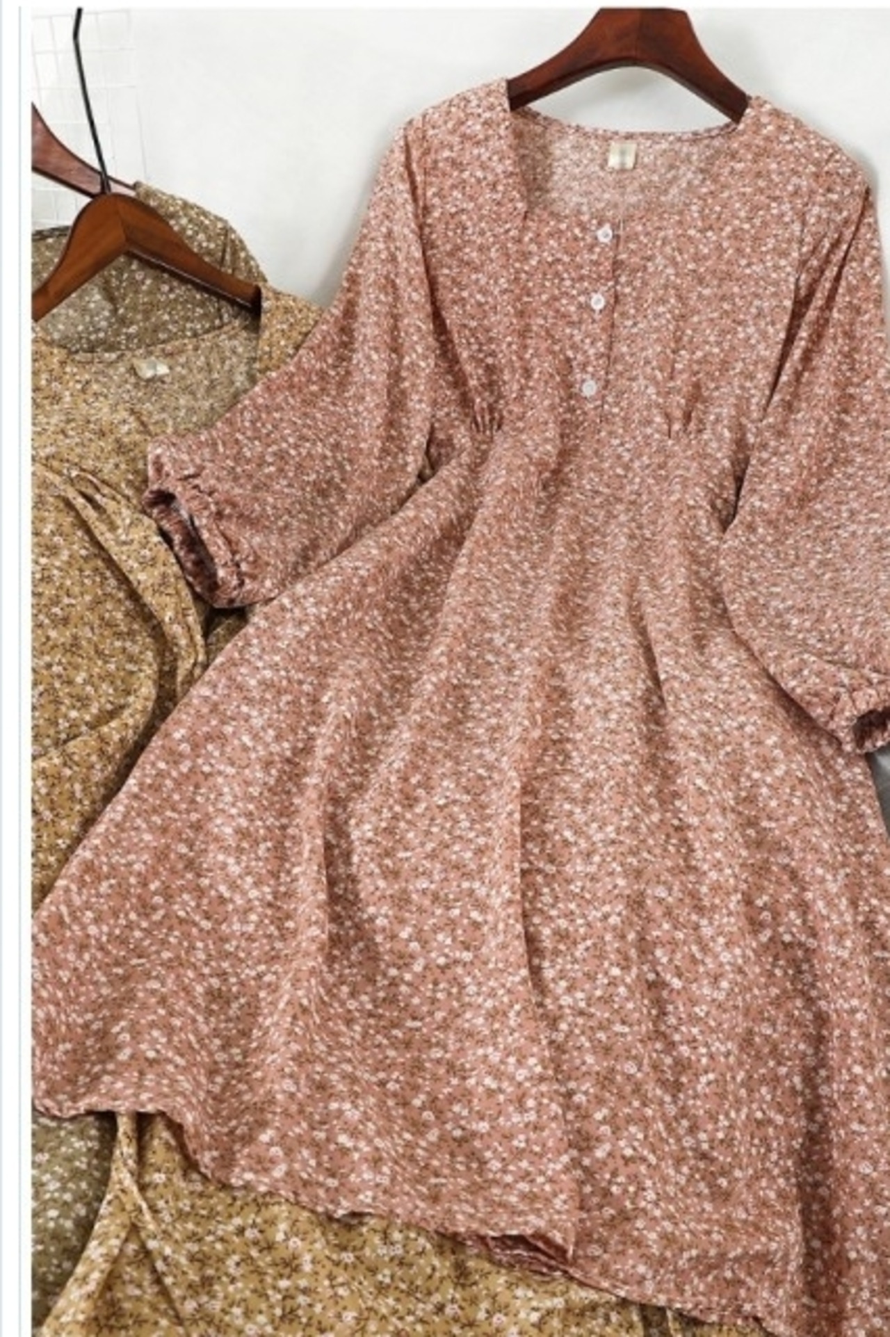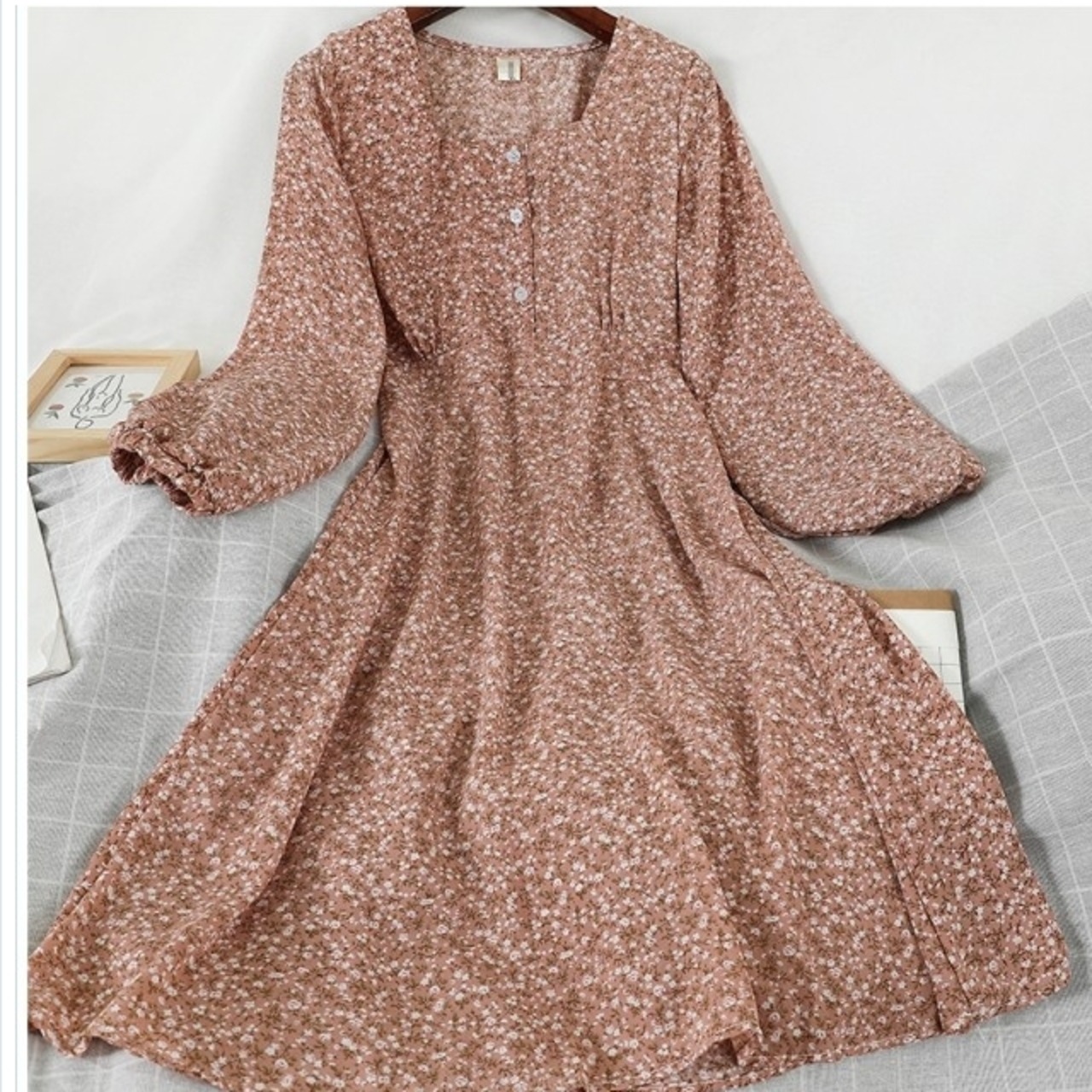 大人可愛い チュニック ワンピース 春新作 大きいサイズ ワンピース デシン 花柄 アコーディオン プリーツ 長袖 ワンピース