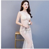 ボートネック ワンピース パーティードレス ボートネック ナイトドレス プリンセスライン 司会 二次会 Aライン セクシー ハイエンド 出演