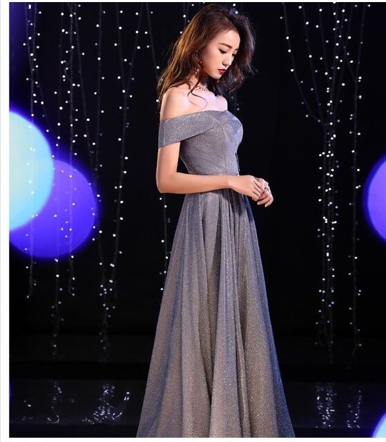 ボートネック ワンピース ファションロング丈スカートワンピース パーティードレスフォーマル ボートネック肩だし 司会ドレス