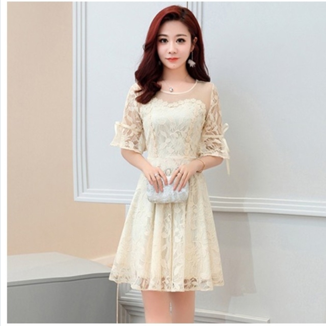 ボートネック ワンピース 司会 花嫁ドレス 演奏会 忘年会 パーティドレス 半袖 レディース ボートネック Aライン ミモレ丈 二次会 カラー
