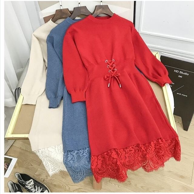 ボートネック ワンピース ボートネックワンピースタイトウエスト編み上げレディースタイトショートミニワンピ長袖おしゃれかわいいバルー