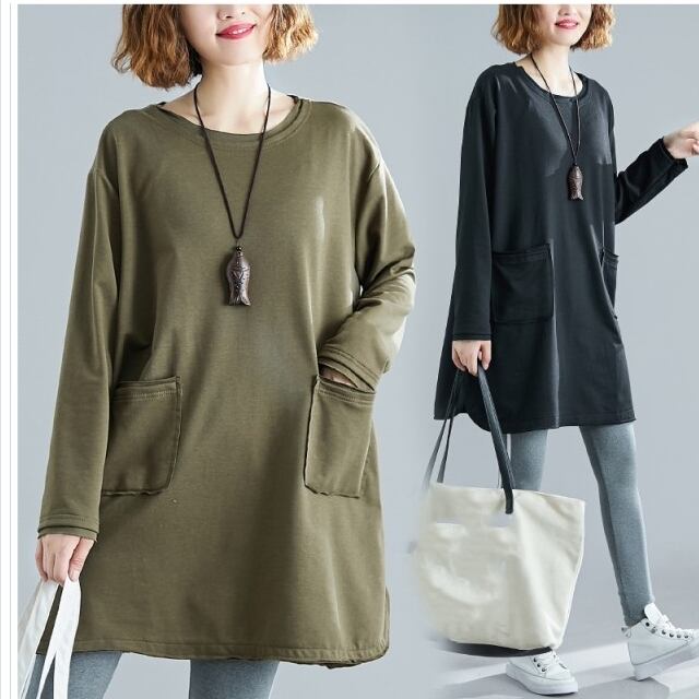 大人可愛い チュニック ワンピース 綿麻混ワンピース 体型カバー コットンリネン マキシワンピース ワンピース ゆったり 可愛い 大人 大