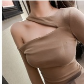 大人 ワンピース タイト 膝丈 韓国 ファッション レディース ワンピース ドレス ワンショルダー ひざ丈 半袖 タイト スリム セクシー オ