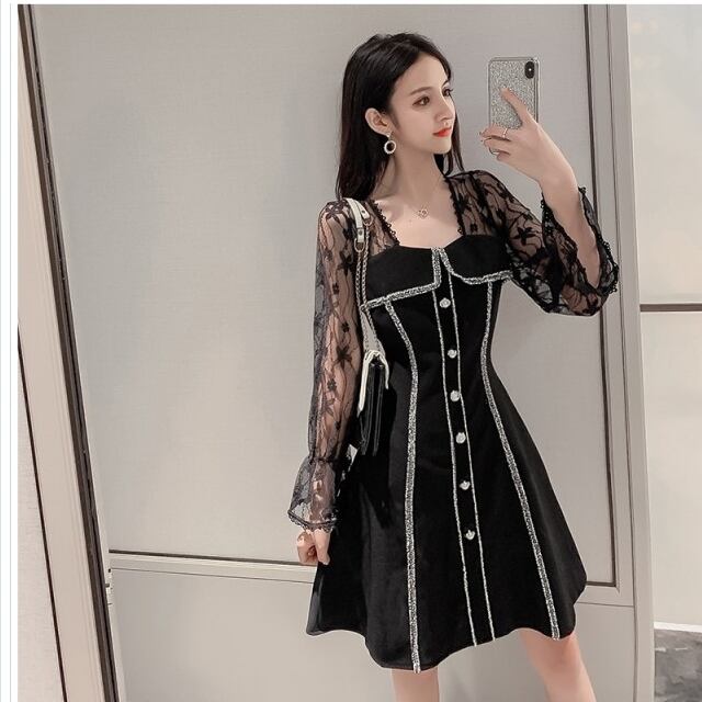 大人 ワンピース タイト 膝丈 キャバ ドレス キャバドレス キャバクラ キャバワンピース パーティードレス レース袖 キャバクラドレス 韓