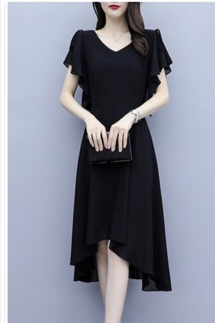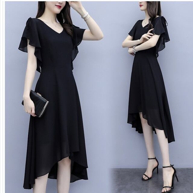 大人 ワンピース タイト 膝丈 パーティドレス フレアスリーブ シースルー レース 半袖 ミディアム丈 Vネック 花柄刺? 結婚式 二次会 同窓