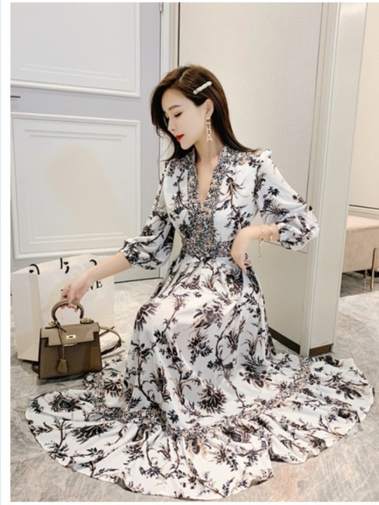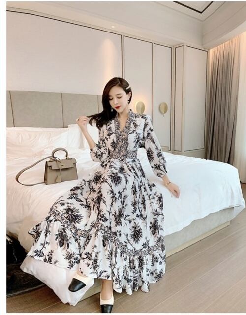 花柄 ロングワンピース 長袖 マキシワンピース ワンピース レディース エスニック ロングワンピース ペイズリー
