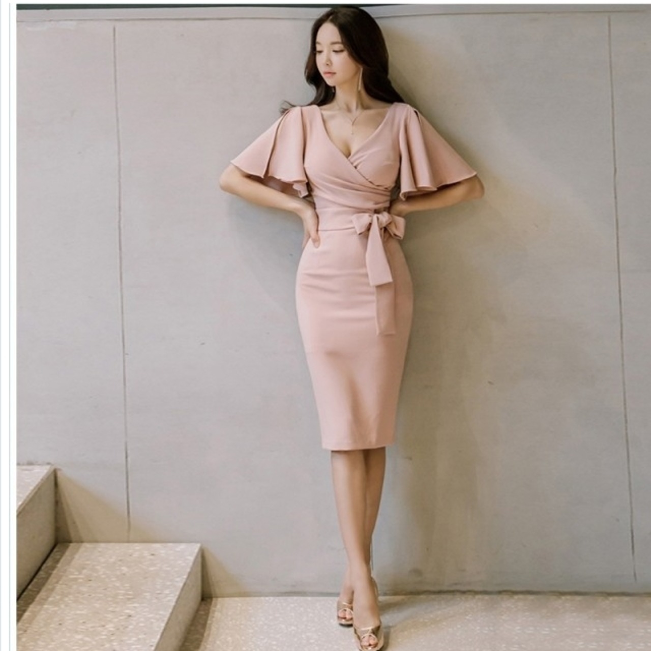 大人 ワンピース タイト 膝丈 フレアスリーブ 大人女性 ミディ丈 タイトワンピース パーティー
