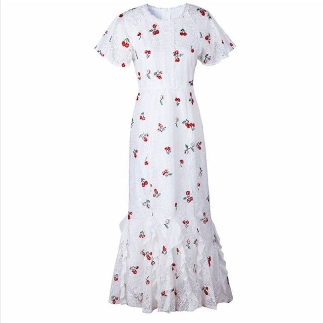 花柄 ロングワンピース 長袖 ワンピース レディース 半袖ワンピース ハイウエストワンピース 花柄 さくらんぼ柄 チェリー柄 フリルスカー